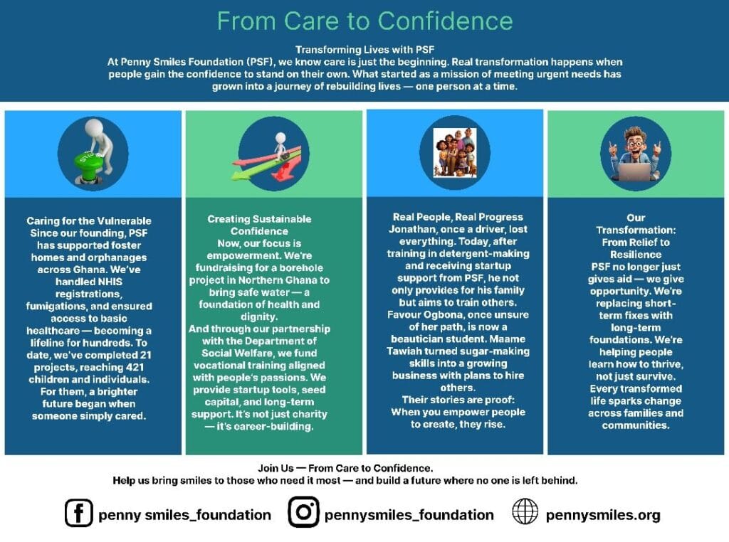 In 2017 I was severely sick and my NHIS had expired, getting access to health care was very difficult for me but pennysmiles came in and made sure my NHIS card is renewed so I can get access medical treatment.