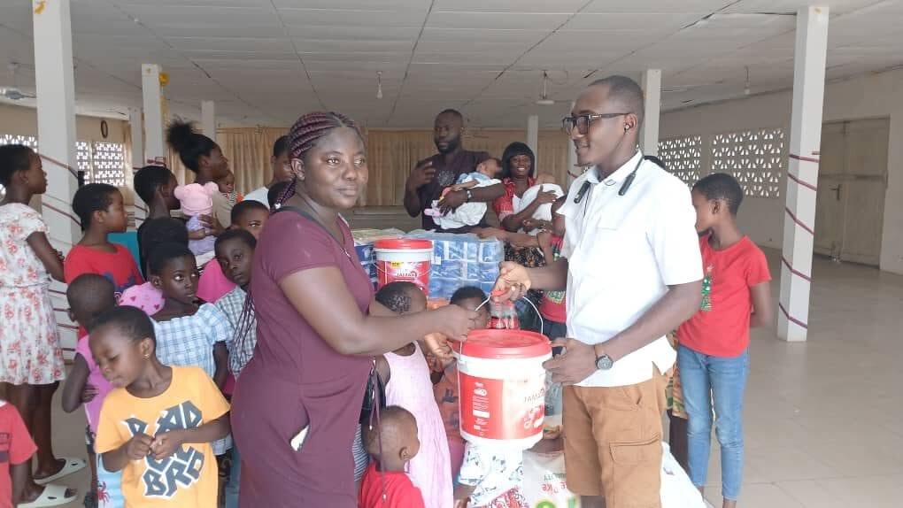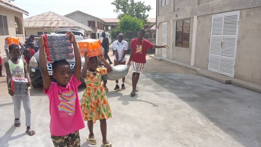 The project day recorded emissaries; Ernest Ayensu, Oteng Yaw Aboagye, Janet Impraim and David Okomeng Nkansah. Around 7 O’clock am the team set off to purchase the requested items and got to the home (Jehovah Rapha Orphanage Home) around 12 O’clock pm where the team was welcome by the in charge.